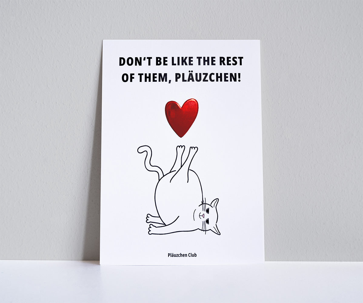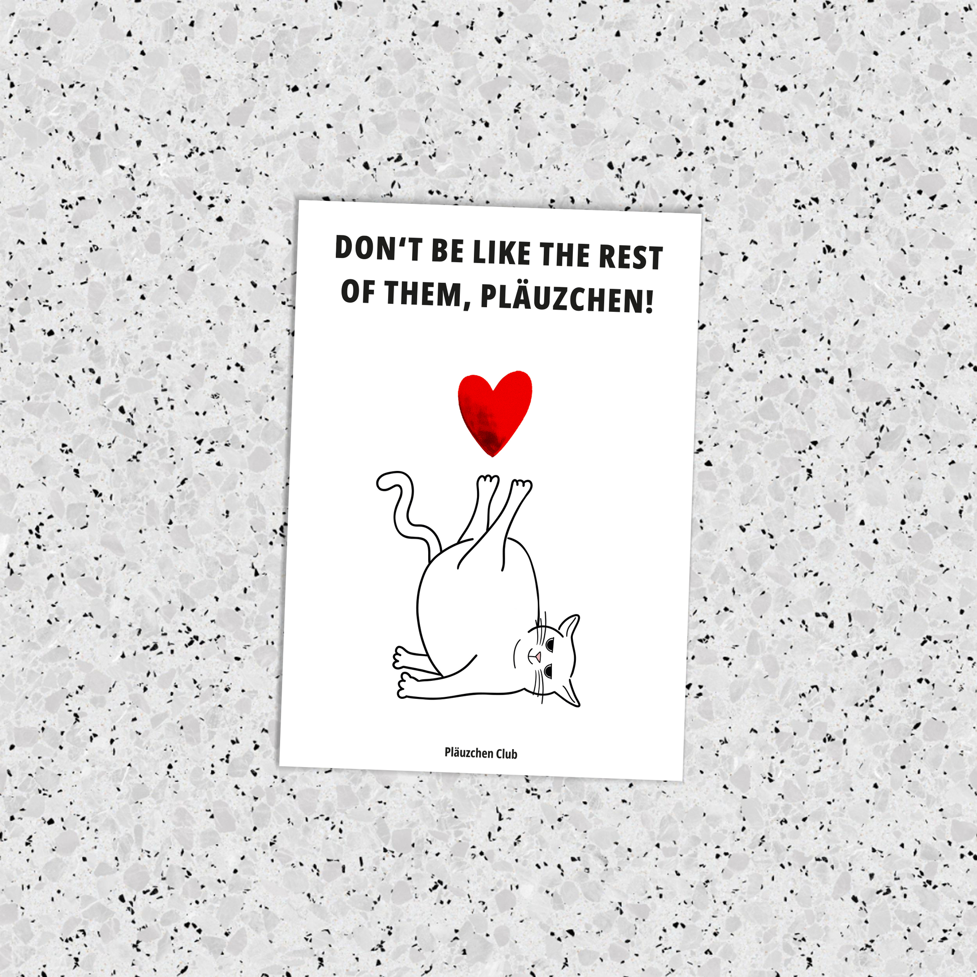 "Don't be like the rest of them, Pläuzchen!" Postkarte, 3 Stück